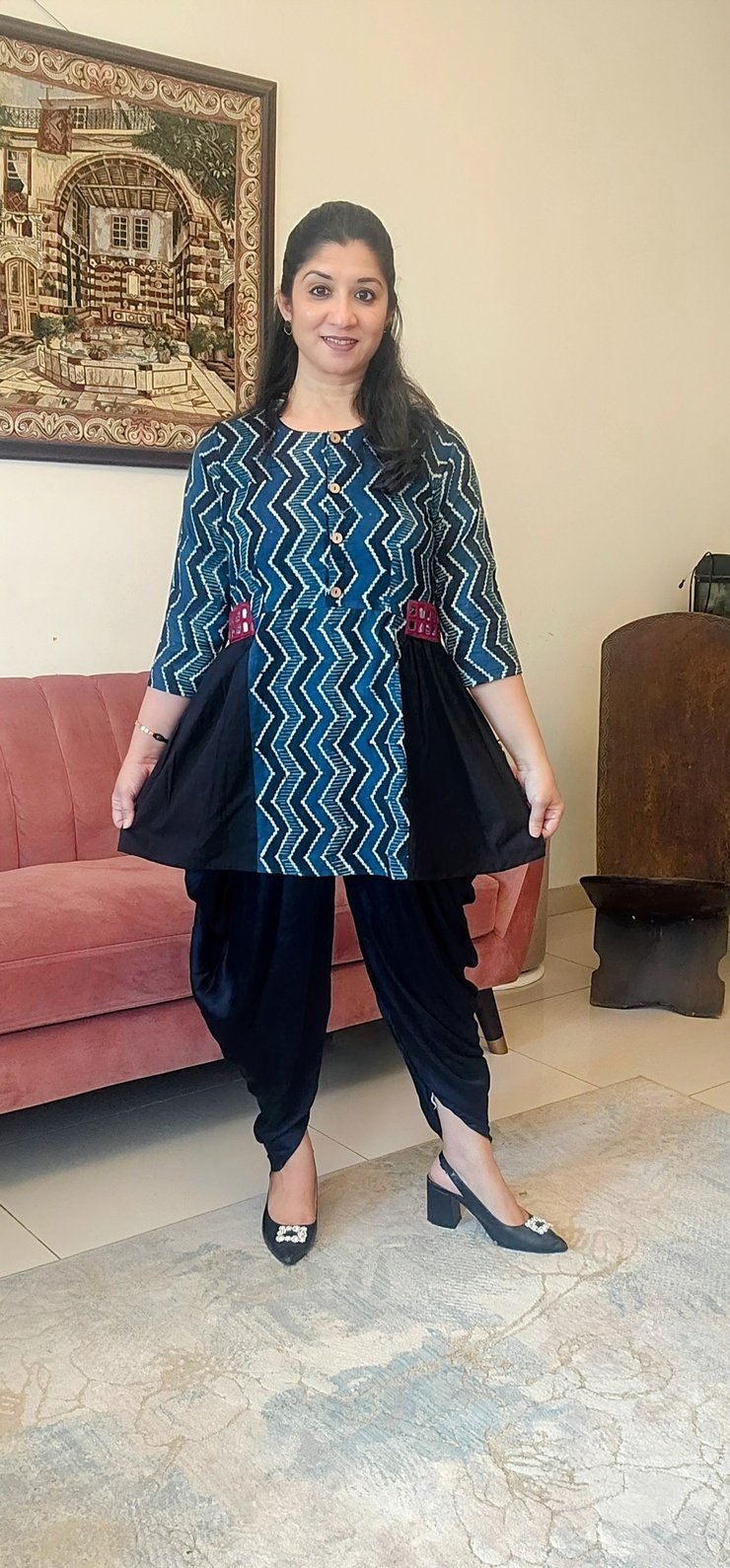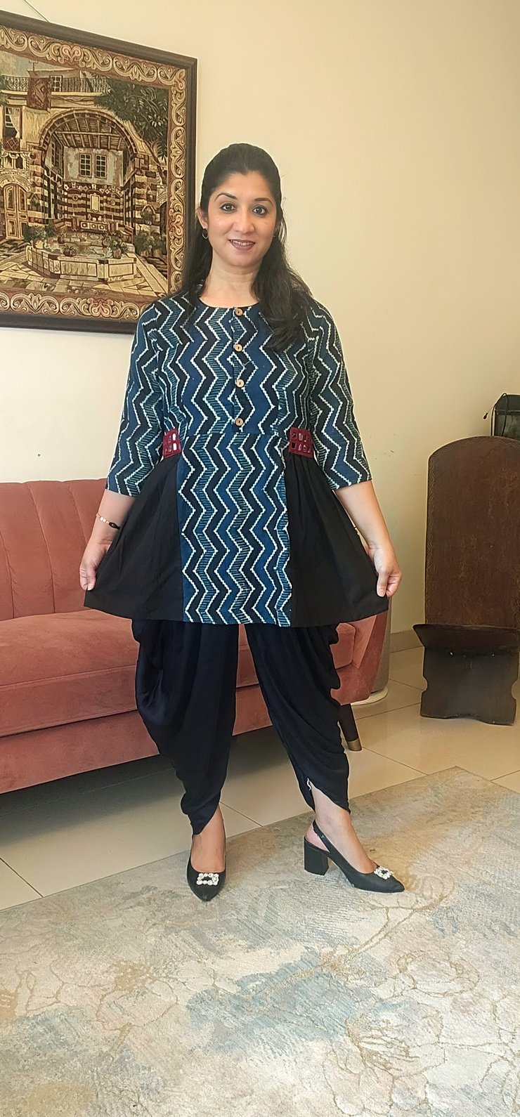 Special care needed for Indigo outfits. Refer our fabric and print disclaimer for more details