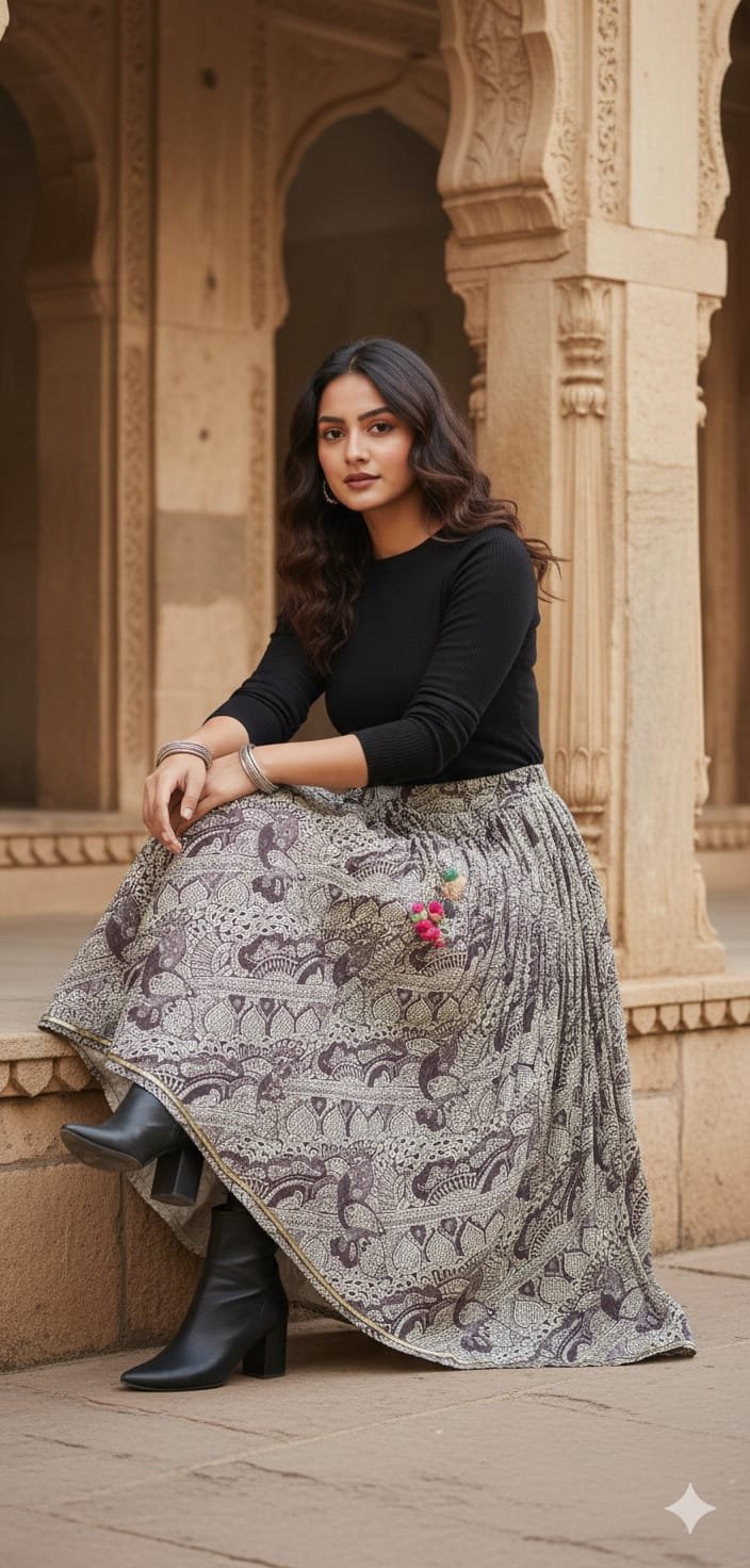Embrace the effortless grace of Rajasthan with our Pure Crushed Cotton Jaipuri Skirts. These skirts are a celebration of traditional craftsmanship and modern comfort, featuring intricate hand-block prints on exceptionally soft, breathable cotton. Designed with a signature crushed texture, these ankle-length A-line skirts offer a voluminous flare that brings a touch of bohemian elegance to any ensemble.