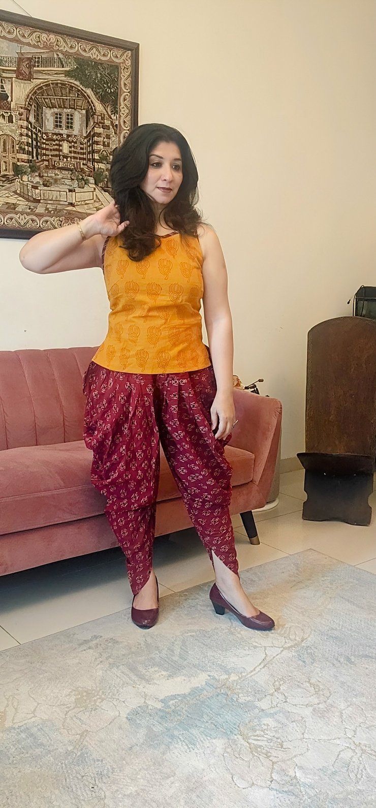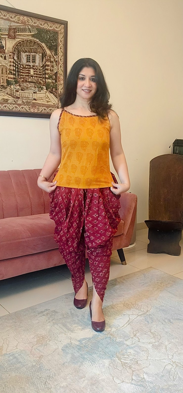 It is a soft cotton dhoti pants which can be paired with sleeveless ganji tops, sleeves tops, shirts and kurtis of your choice