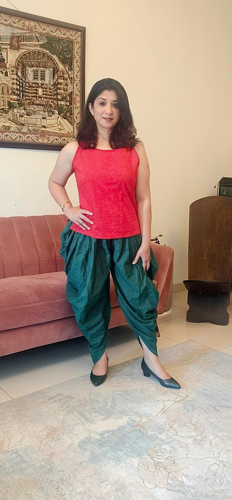 It is a soft cotton dhoti pants which can be paired with sleeveless ganji tops, sleeves tops, shirts and kurtis of your choice