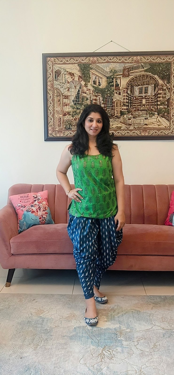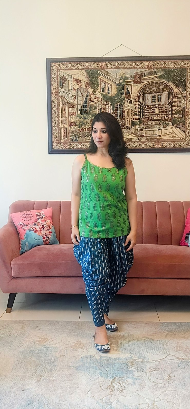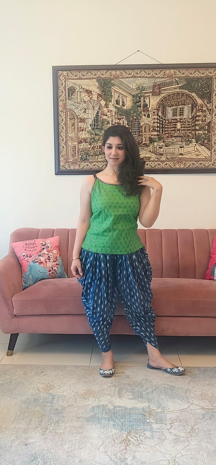 It is a soft cotton dhoti pants which can be paired with sleeveless ganji tops, sleeves tops, shirts and kurtis of your choice