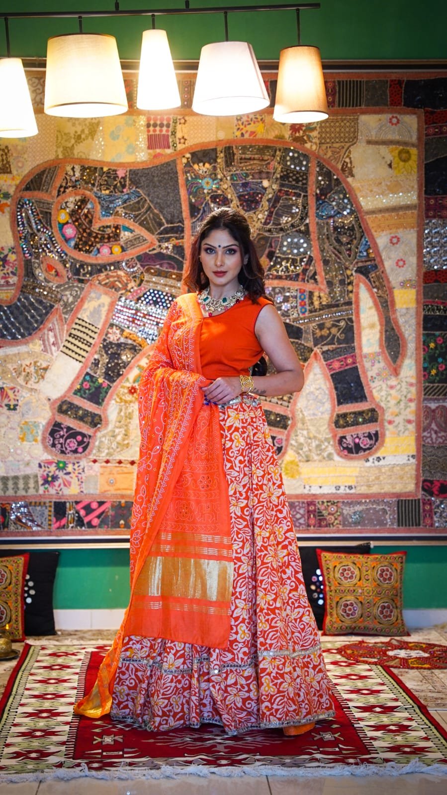 Crafted from pure cotton, this batik print skirt in a rich tan–orange hue brings together comfort and traditional charm. Designed as a full 6-meter flair kali lehenga, it offers a beautifully voluminous flow with elegant movement. The skirt is finished with a distinctive coil border along the hem, adding a striking handcrafted detail to the silhouette. Lightweight and breathable, it is ideal for long wear during festive occasions or cultural gatherings.