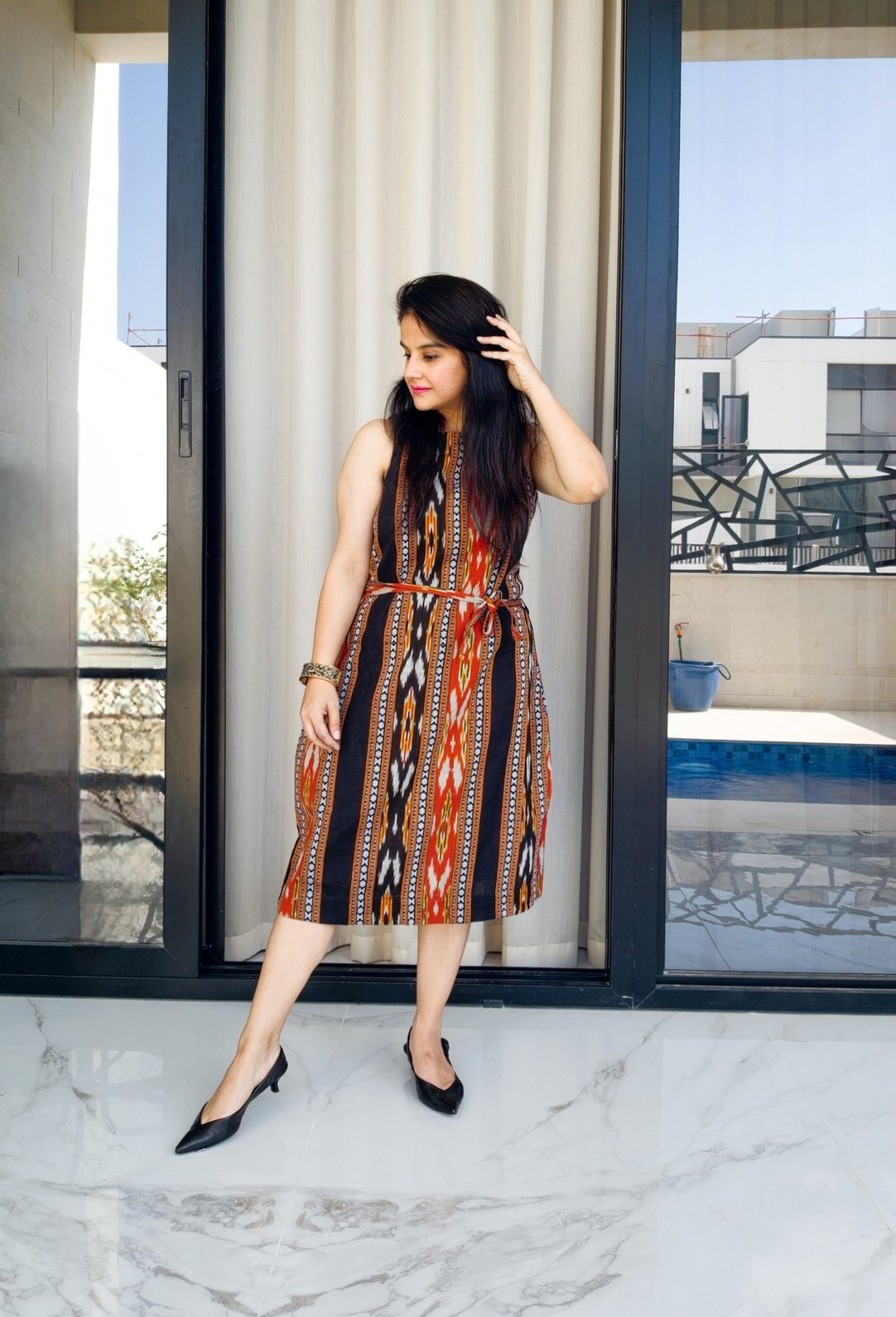 Vertical border pattern in ikat, tailored for those who appreciate style without sacrificing comfort.