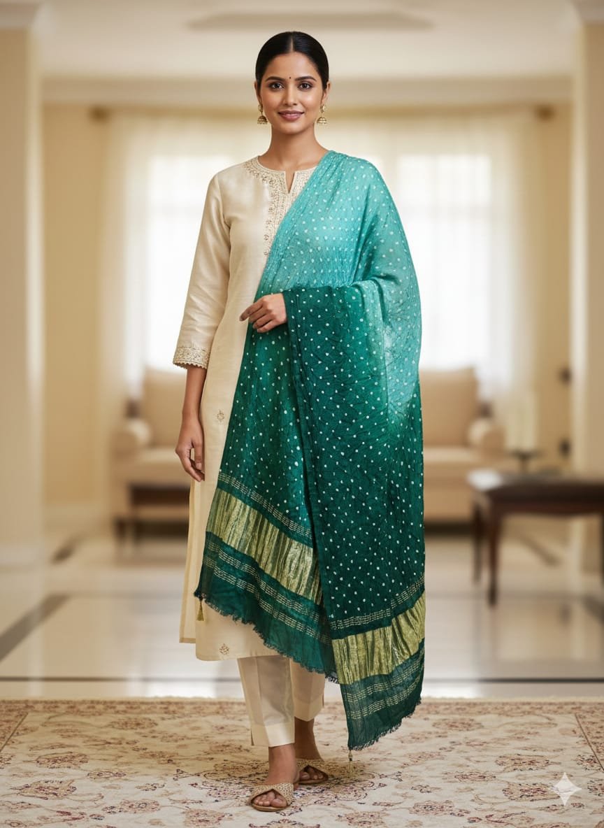 Pair it with solid kurtas, anarkalis, or minimalist suits to let the craftsmanship and colour transitions shine effortlessly.