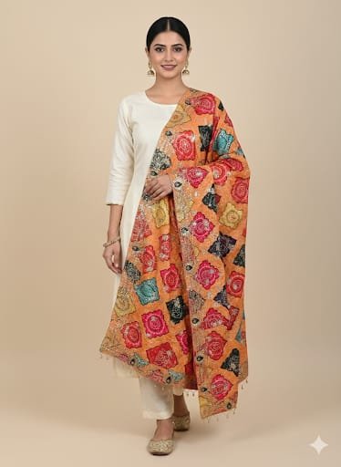 Lightweight with a graceful drape, this dupatta effortlessly elevates both festive and semi-formal ethnic looks. Finished with subtle tassels along the edges, it reflects timeless craftsmanship with a refined, heritage feel.