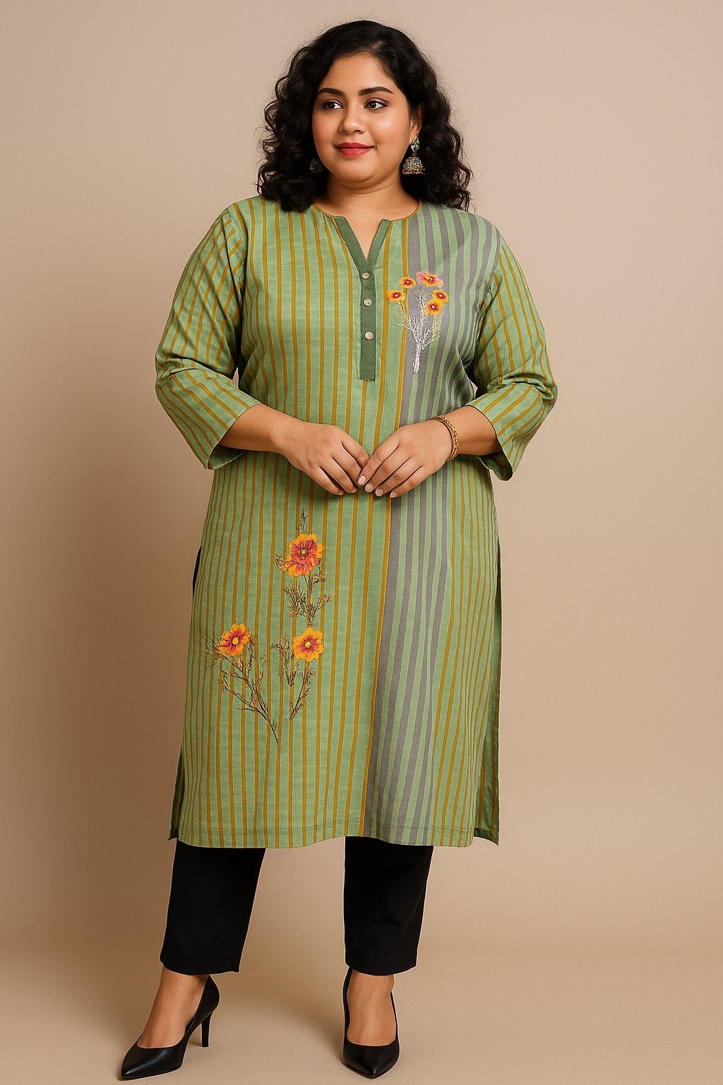 Its an soft muslin cotton kurta with print patches of floral, stripes and block pattern