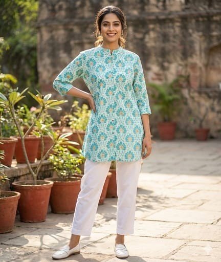 It is a 3/4 th sleeves hip length top in soft cotton