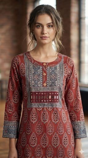 Maroon Ajrakh Indigo print top in soft cotton.