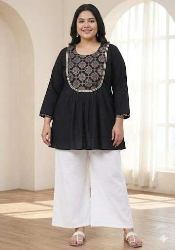 Black plain top with ajrkah yoke details.